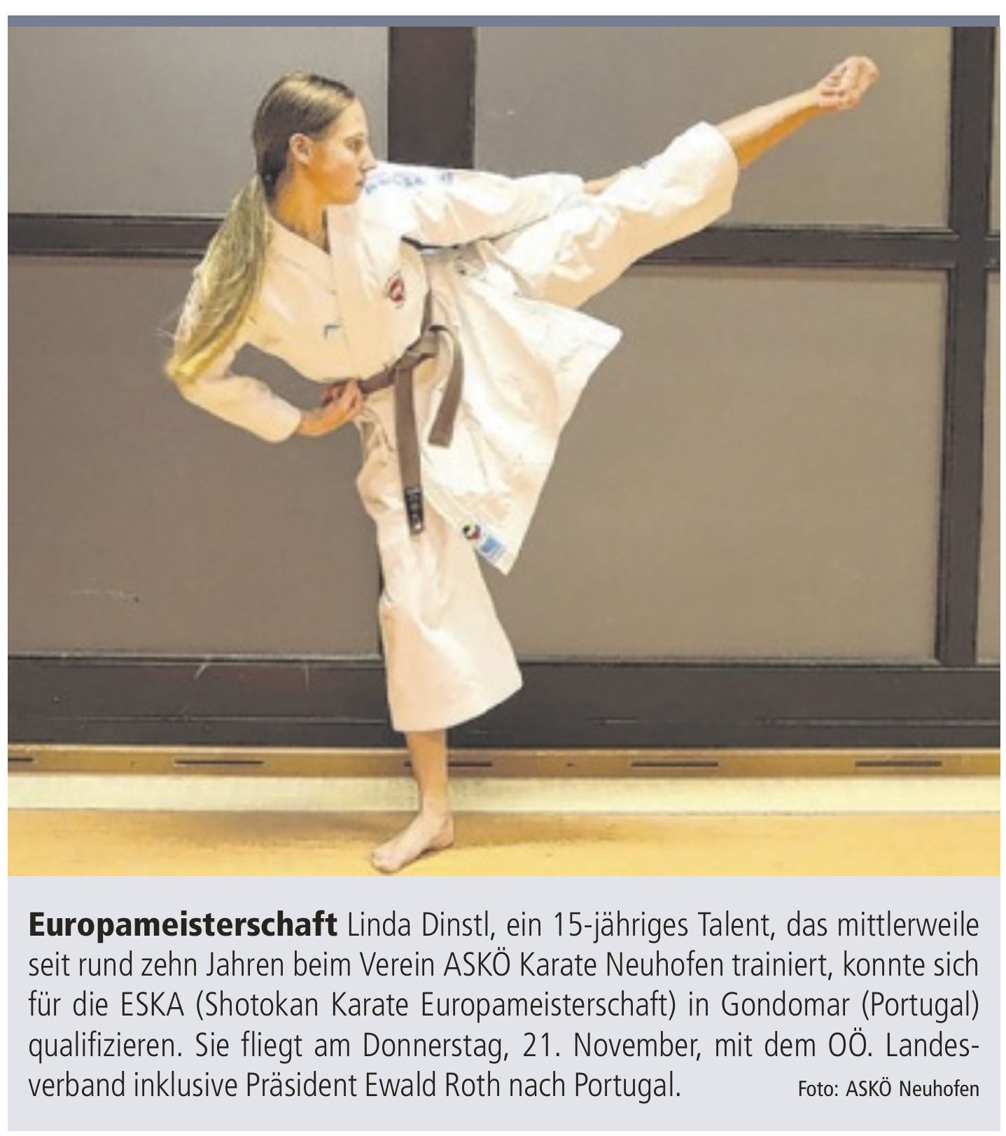 NEUHOFEN. Zum achten Kamikaze Karate Sommercamp in Neuhofen an der Krems kamen dieses Jahr 13 herausragende Trainer aus Japan, Frankreich, Spanien, Deutschland, Italien, Schweiz und Österreich.Sportler aus der ganzen Welt – 15 verschiedene Nationen nutzten die einmalige Gelegenheit, um mit diesen Meistern des Karatesports zu trainieren. Darunter auch Mitglieder des österreichischen Nationalteams (u.a. Bettina Plank). Neben den fünf möglichen Karateeinheiten pro Tag begeisterte auch das vielfältige Rahmenprogramm: Kobudo, Capoeira, Kyusho, Tae Bo zum Auspowern am Abend und zum Einstimmen am frühen Morgen Qi Gong. Kenji Hashimoto aus Japan gab Kindern und Jugendlichen die Möglichkeit, gratis mit dem Sport Karate in Berührung zu kommen. Auch Capoeira, Stockkampf und Tae Bo konnten so im Rahmen der Ferienaktion Neuhofen ausprobiert werden. Veranstaltet wurde das dreitägige Sportevent von der ASKÖ Karate Seibukan NeuhofenInternationales FlairGroßer Andrang herrschte zur Shownight mit dem fünften Energie AG Cup am Samstag im Forum Neuhofen. Weltbeste Karateka und die Kinder des tschechischen Fight Club zeigten eindrucksvolle Darbietungen, Karate in vollendeter Form, Kobudo-Vorführungen mit verschiedenen Waffen, perfekte Körperübungen oder rhythmisches Capoeira. Die Sayonara Party schloss an die Shownight an und zahlreiche Gäste konnten sich kulinarisch mit verschiedenen Schmankerln (2 Spanferkel, Feinstes vom Grill) verwöhnen. Für Stimmung sorgte DJ Tommy – es wurde ausgiebig getanzt und gefeiert.Cup-ErgebnisseDas beste Ergebnis in „Kata weiblich“ erzielte dabei Charlotta Prete (It.) noch vor Reina Nakashima (Jap.). In „Kata männlich“ holte Deger Alper (Ö) noch vor Lukas Buchinger (Ö) und Massimiliano Rodorigo (It.) den Stockerlplatz. Miyu Akiyama (Jap.) wurde noch vor Valeria Kumizaki (Ö) und Margarita Mikhaltsova (D) Siegerin in der Disziplin „Kumite weiblich“, bei den Herren sicherte sich Kai Kudo (Jap.) vor Andre Gratzer und dem Polen Mariusz Migdalski den ersten Platz.